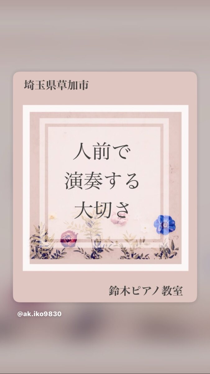 こんにちは草加市鈴木ピアノ教室の鈴木明子です 今年の1月に今まで勉強してきたシューマンの卒業演奏会がありました。レッスン、家の事など沢山ある中で学んだこと活かしつつ無事に3曲の卒業演奏が終わりました。今思うとこの人前で弾く機会があったから… -